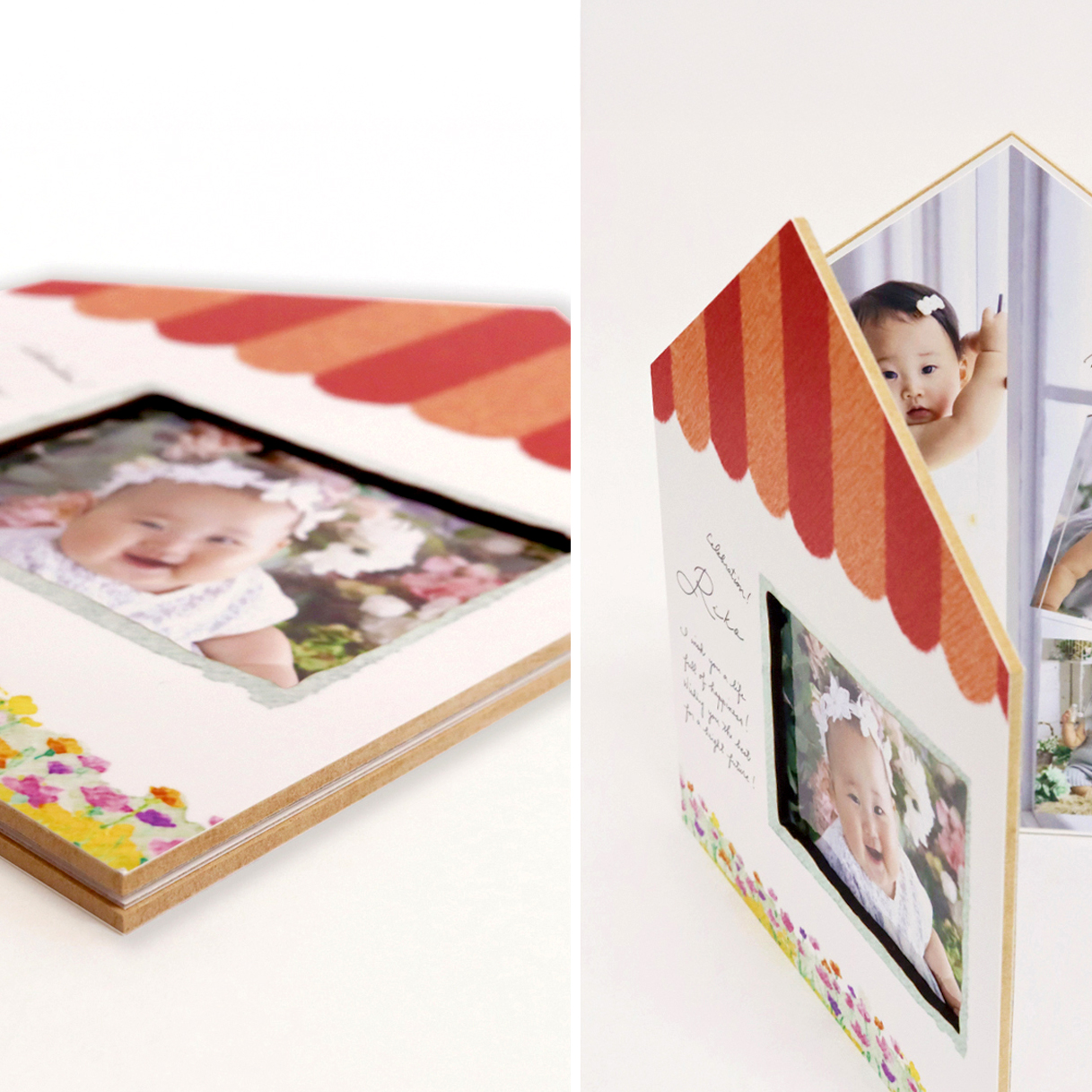 見開きでお写真を飾れる仕様で、開くたびに特別な瞬間がよみがえります。